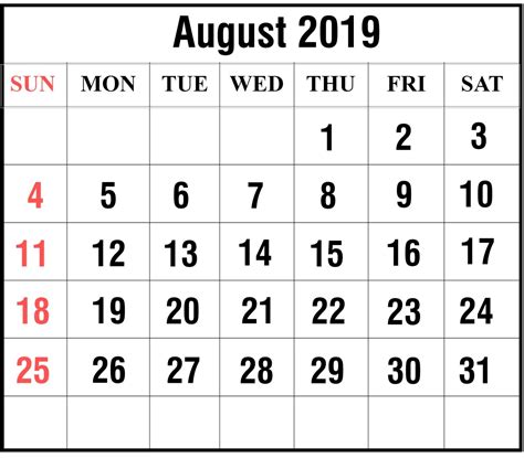 August 2019 Calendar Printable