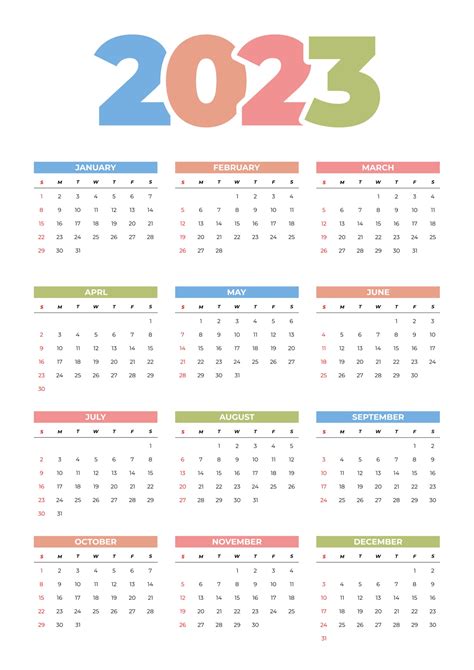 Calendar 2023 Vector Template, Calendar 2023, 2023, Happy New Year 2023
