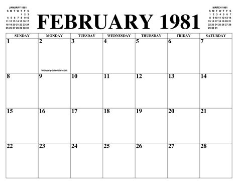 Web view online or print in pdf format. Web view online or print in pdf format. You can create online monthly calendar february 1981. Web 6 rows download printable february 1981 calendar. Web 9 rows february 1981 calendar of the united states of america. Groundhog day february 12 1981:.