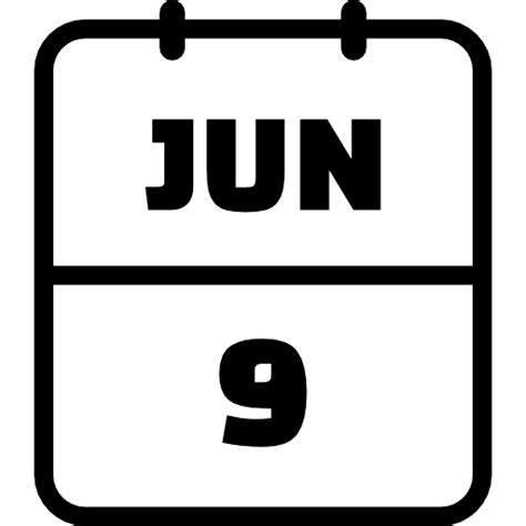 Flat Icon Calendar 9 of June. Date, Day and Month Stock Vector