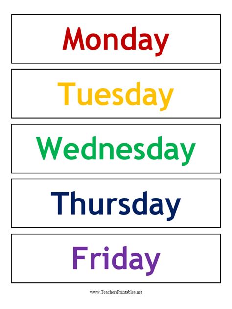 Days of the Week, Calendar Sheets with the Days of the Week Stock