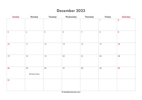 Editable Calendar December 2023