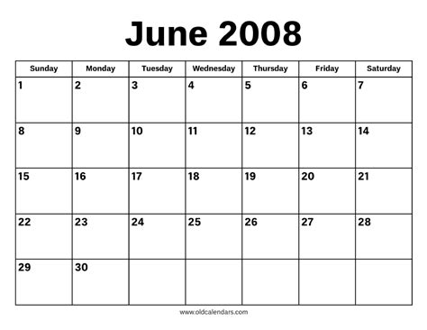 June 2008 Calendar Printable Old Calendars