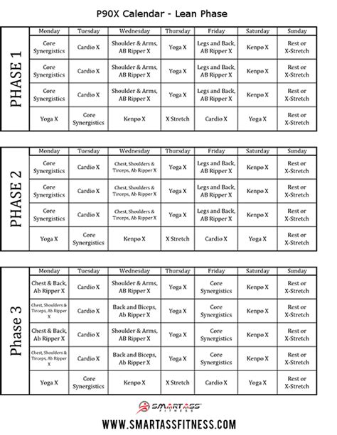 Lean P90X Schedule Smart Ass Fitness