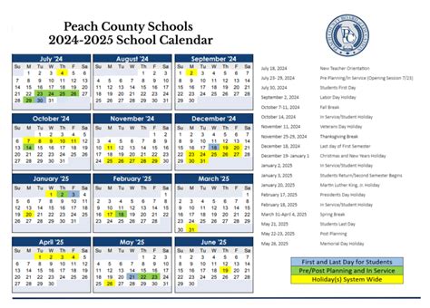 Peach County Calendar. Click here to download a copy. This page contains the major holiday dates from the 2024 school calendar for.